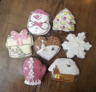 Kviešu milti, cukurs, margarīns (dzīvnieku tauki (cūku) un augu eļļa (rapšu), ūdens, sāls, emulgatori (saulespuķu lecitīns, taukskābju mono un diglicerīdi), skābuma regulētājs (citronskābe) aromatizētājs krāsviela beta-karotīns), pūdercukurs, olas, dabīgās sulas (melleņu, spinātu, aveņu, smiltsērkšķu, citronu) kanēlis, muskatrieksts, koriandrs, krustnagliņas, melnie pipari, smaržīgie pipari, kakao, soda